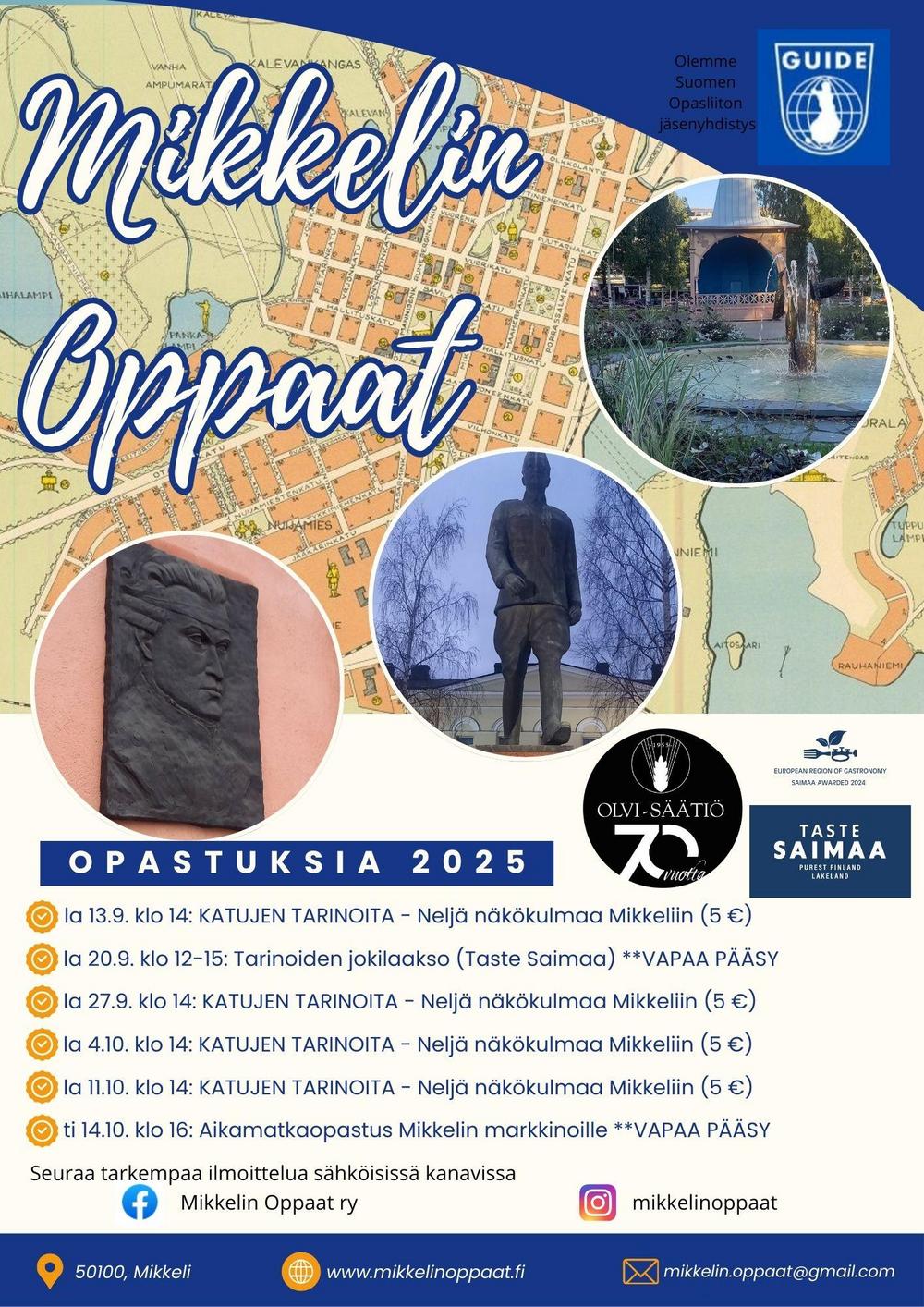 Syksyn ensimmäinen aikamatkaopastus Mikkelin menneisiin vuosikymmeniin ehti jo mennä, se toteutettiin viime lauantaina 6.9.2025. Kiitokset mukana olleelle isolle kuulijajoukolle! Syksyllä 2025…
